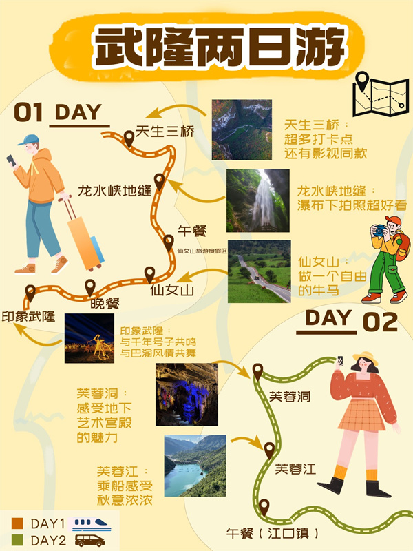 谁说周末太短,不能尽兴?这份武隆「顶配」两日攻略,带您串联喀斯特地貌的奇观与山水的秀色,更有重庆籍专属Pass加持,让秋日之旅超值又尽兴。