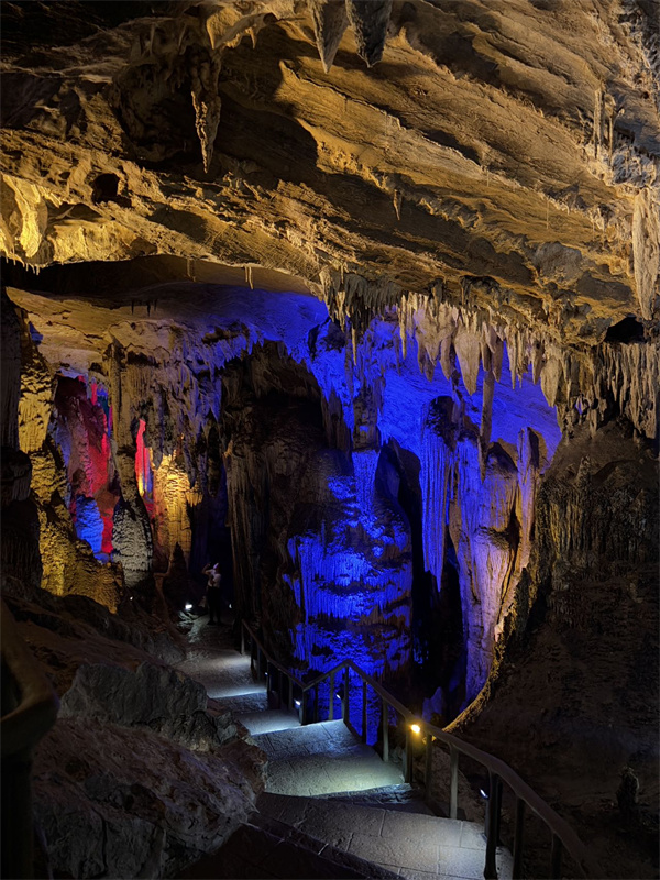 次日从“地下艺术宫殿”芙蓉洞启程。洞内钟乳石琳琅,在灯光映照下,“巨幕飞瀑”“生命之源”等景观如幻似真,演绎地球亿万年记忆。