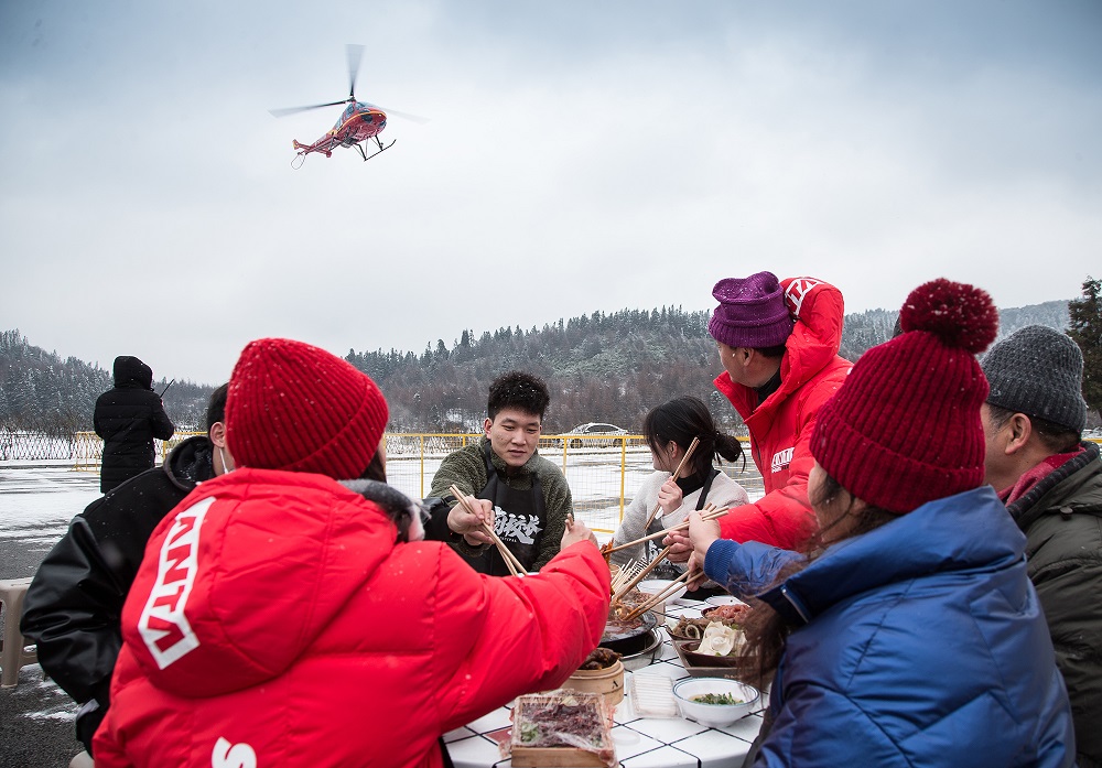 当天中午,仙女山就开启了一场别开生面的雪地涮火锅活动,火红的汤锅、翻滚的热情、醇厚的味道、洁白的冰雪,诸多元素叠加在一起,对于游客们来说注定是一次终身难忘的旅程。“好有意思哦,在雪地吃火锅,想都没想过。既然来了,肯定得试试!”一位游客表示。