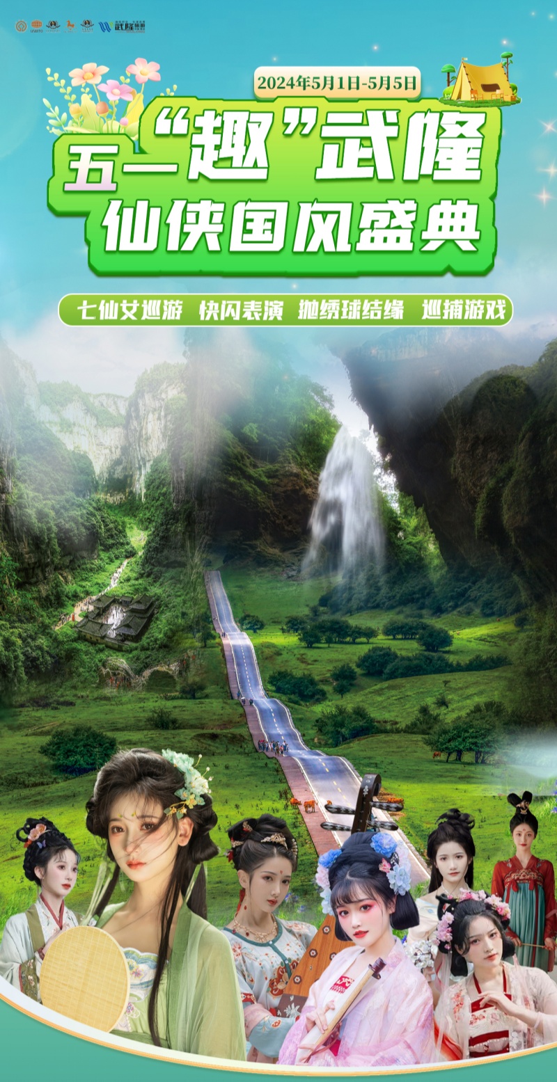 5月2日至5月4日,武隆景区将举办一场别开生面的“仙女游园”活动。你可以在天生三桥、仙女山最美公路、大草原等地,邂逅身着古装的七仙女,她们仿佛从画中走来,与你共赏山间的轻舞,共度那美好时光。