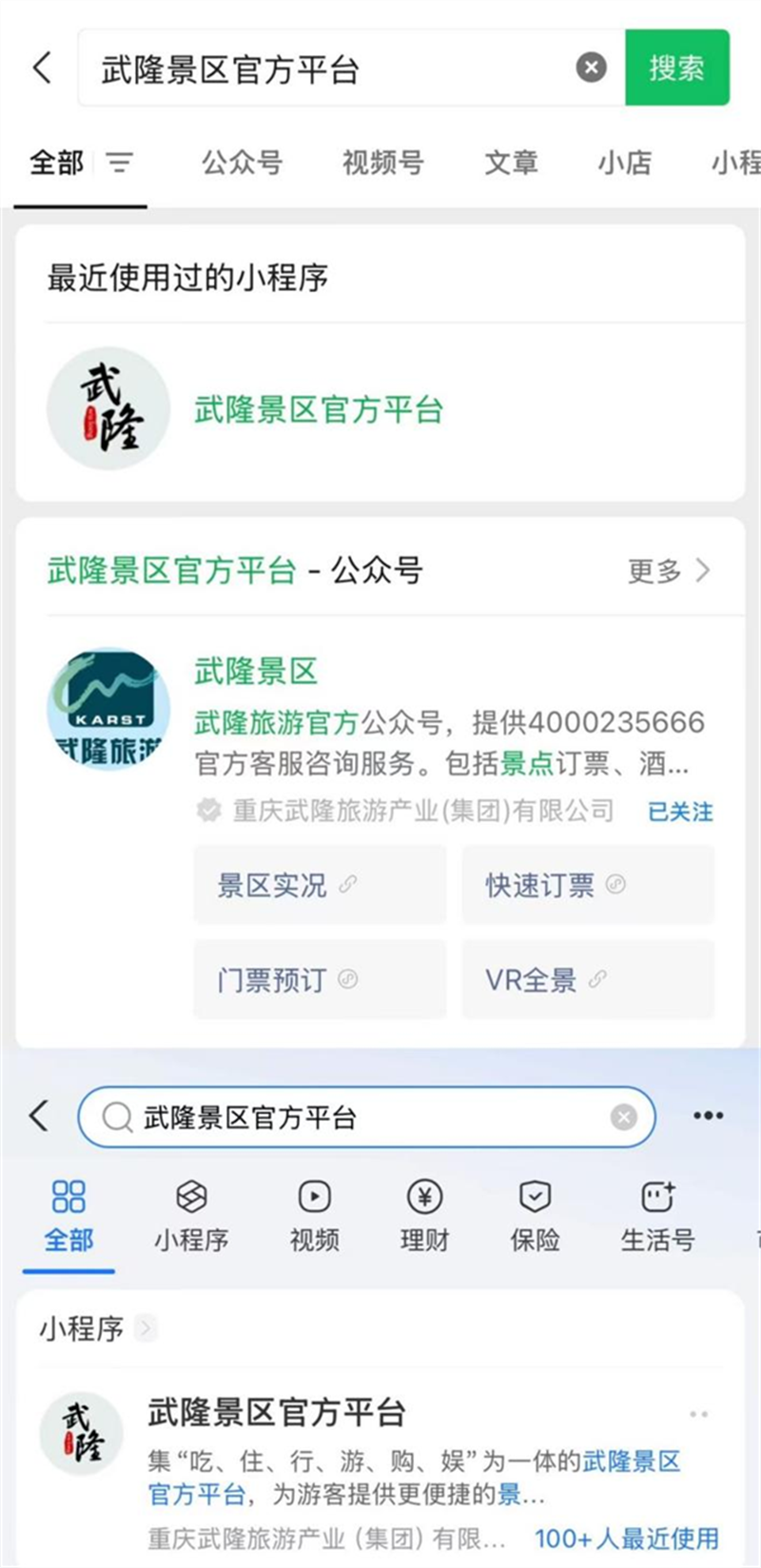 有需求的游客可直接扫描图片二维码购票,或通过微信或支付宝搜索“武隆景区官方平台”小程序购票,也可到武隆景区售票窗口,实名购票。请注意,购票须知、入园方式以景区官方平台、售票窗口解释为准。