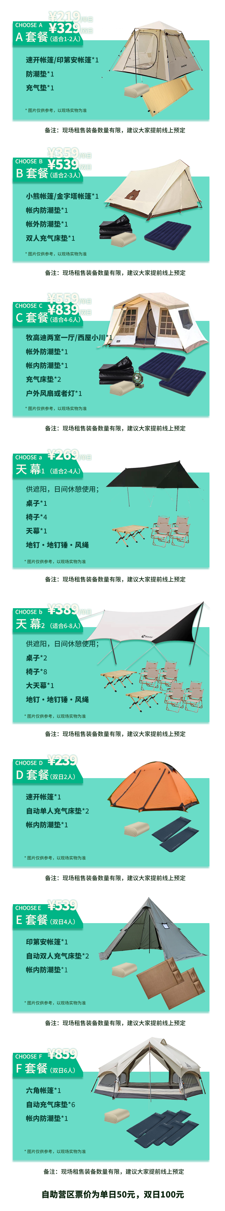 提供帐篷租赁服务(含防潮垫、睡袋)