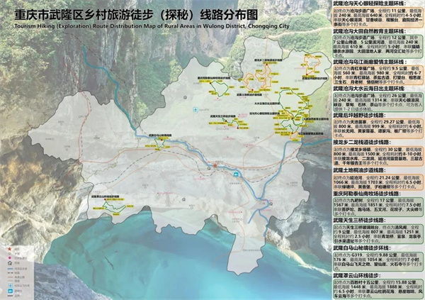 近日,武隆区正式发布11条徒步(探秘)线路分布图,为户外爱好者和游客提供了便捷实用的“行走指南”。该分布图清晰标注了每条线路的全长、起始点、核心打卡点位及串联景观,让游客能一目了然掌握行程信息。