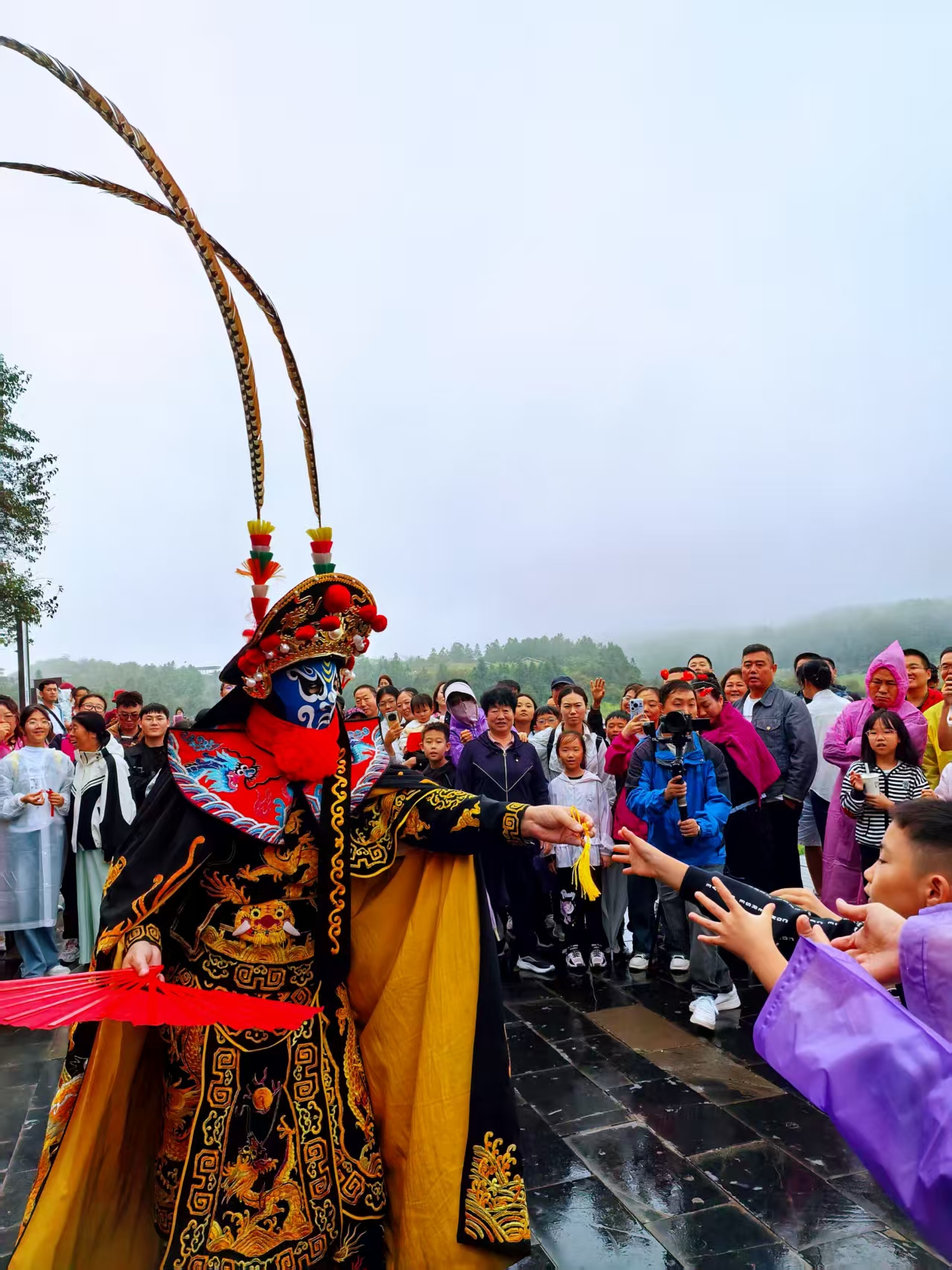 非遗展演区入口挂着 “非遗贺国庆” 横幅,川渝变脸艺人的 “九变” 绝技融入红色脸谱,变脸间隙比出 “国庆快乐” 手势;喷火表演时,火焰映着周边小国旗,引得孩童拽着家长蹦跳,艺人下台还为孩童贴国旗贴纸。