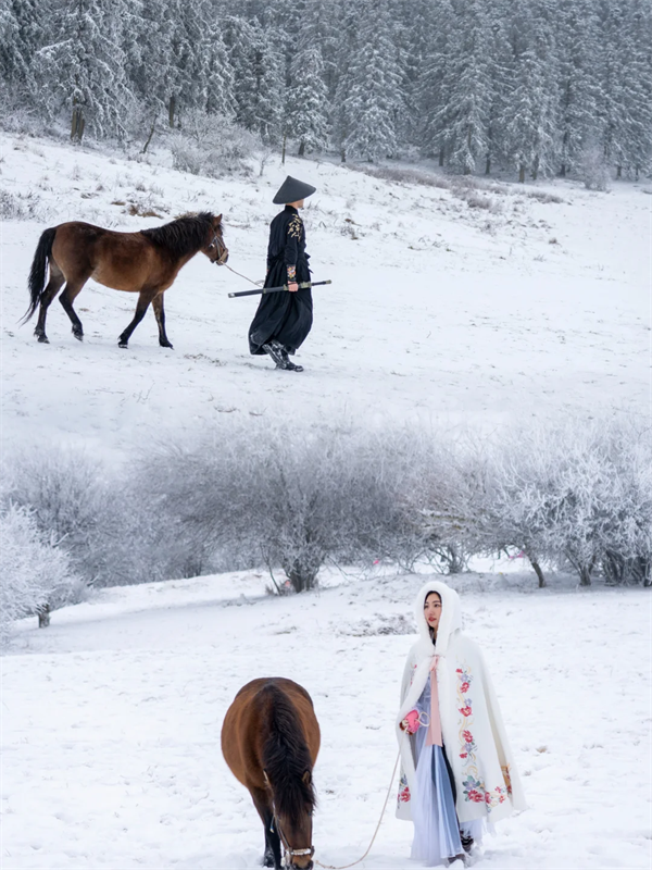穿行在仙女山的雪原之间,你会遇见冬日的魔法——树枝裹上晶莹的冰羽,阳光穿过林梢洒下钻石般的光点。每一口呼吸都是清冽的,每一步脚印都是崭新的。在这里,你不是过客,而是闯入冰雪童话的造梦者。