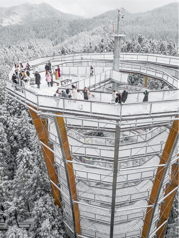 树顶漫步:穿越雾凇森林,登上96米云端旋降,俯瞰南国雪原的壮丽风光;