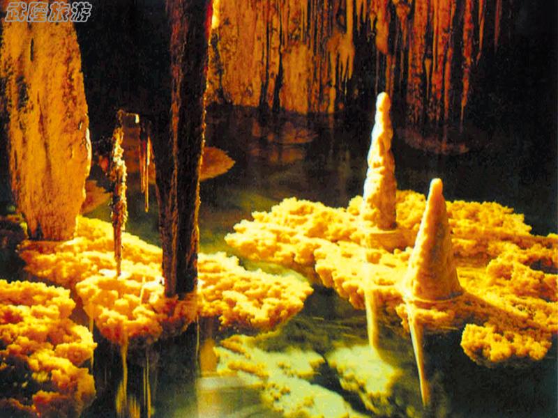 芙蓉洞:芙蓉洞被誉为中国最美六大洞穴之一,芙蓉洞是一个大型石灰岩洞穴,全长2400米,洞体高大,宽高多在30至50米之间,其中辉煌大厅底面积在1.1万平方米以上。洞内各种次生化学沉积形态(speleothems,即钟乳石类。芙蓉洞中有碳酸盐岩和硫酸盐岩两类)琳琅满目、丰富多采。其中大多数种类分布之广泛,质地之纯净,形态之完美,在国内目前的发现中多属少见。尤其是正在形成中的池中珊瑚状和犬牙状方解石晶花,洞壁上各种姿态的卷曲石、方解石和石膏晶花更是国内稀有,世界罕见。各类沉积物所构成的洞内景观,既玲珑剔透,又辉煌壮观。个体华丽精巧,全景灿烂缤纷,令人目不暇接。按规划现阶段开发三大景区,游览线路全程1846米,主要景点约三十处,其中十多处在国内外均可堪称最佳景点。